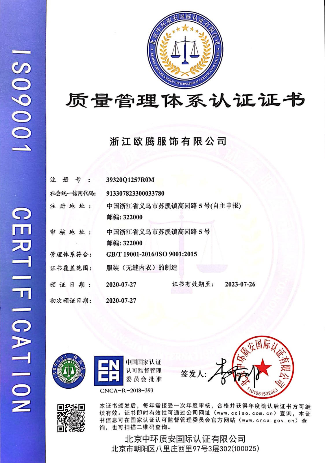 浙江歐騰服飾有限公司位于世界小商品之都-義烏。創(chuàng)立于2015年,是一家專業(yè)生產(chǎn)無縫針織運動服飾和內(nèi)衣的工貿(mào)一體企業(yè),擁有自主出口權(quán)。 工廠的占地面積約16000平方米 ,引進(jìn)了大型圣東尼、高騰等多種先進(jìn)的制衣設(shè)備300余臺。月產(chǎn)能可達(dá)90萬件。 歐騰服飾每年投入近百萬資金打樣開發(fā)新產(chǎn)品,有著一支高素質(zhì)設(shè)計、技術(shù)員工隊伍。工廠先后通過了ISO 9001質(zhì)量管理體系認(rèn)證、BSCI認(rèn)證、GRS認(rèn)證、OEKO-TEX國際生態(tài)紡織品認(rèn)證等多項專利檢測報告。可提供OEM&ODM服務(wù)。歐騰服飾以一套完整、科學(xué)的質(zhì)量管理體系,生產(chǎn)的服裝從原材料紗線到成衣,質(zhì)量完全能夠滿足國內(nèi)、國際質(zhì)量要求。獲得了客戶一致好評。工廠先后獲得省科技型企業(yè)、國家高新企業(yè)、義烏市誠信講信用單位、規(guī)上企業(yè)、信用AAA級等榮譽。